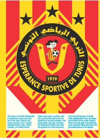 突尼斯希望體育足球隊(duì)的logo可以追溯到該俱樂部在突尼斯首都突尼斯市的 Bab Souika 街區(qū)的起源。俱樂部的名字來源于當(dāng)?shù)刂目Х瑞^ Café Esperance,足球愛好者聚集在這里觀看比賽和喝咖啡。足球俱樂部代表了北非更廣泛的傳統(tǒng),除了作為社交中心之外,咖啡館還有出租其場(chǎng)地用于注冊(cè)體育協(xié)會(huì)的傳統(tǒng)?!坝捎诒狈悄滤沽钟绊懥薮螅皇煜つ滤沽治幕妥闱虻娜丝赡軟]有意識(shí)到咖啡館和足球之間的聯(lián)系,”皮納爾繼續(xù)說道“非洲的許多足球logo并非純粹出于營(yíng)銷角度,而是體現(xiàn)了文化與設(shè)計(jì)之間誠(chéng)實(shí)、綜合的互動(dòng)。”